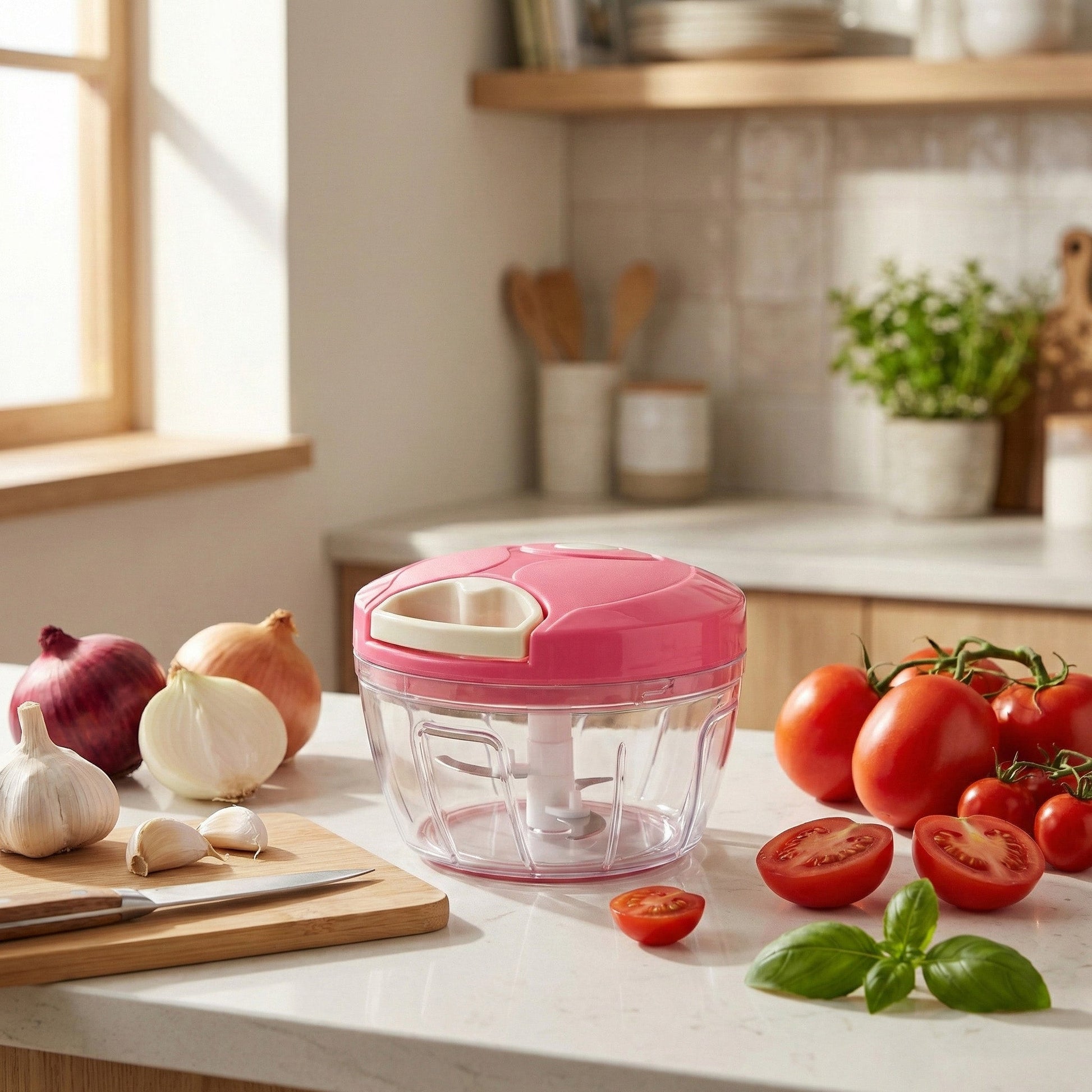 সবজি কাটতে বা পেঁয়াজ কুঁচি করতে আর ঝামেলা নয়! এই ম্যানুয়াল পুল চপার এর সাহায্যে মাত্র কয়েক সেকেন্ডেই সমানভাবে সবজি, পেঁয়াজ, টমেটো, মরিচ, ফল বা অন্যান্য উপকরণ কেটে ফেলুন। শুধু হ্যান্ডেল টেনে দিলেই ব্লেড ঘুরে যাবে এবং সহজে হয়ে যাবে কাটা।